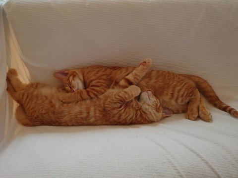 一緒にお昼寝でシッポがサワサワ、気になるのよ!